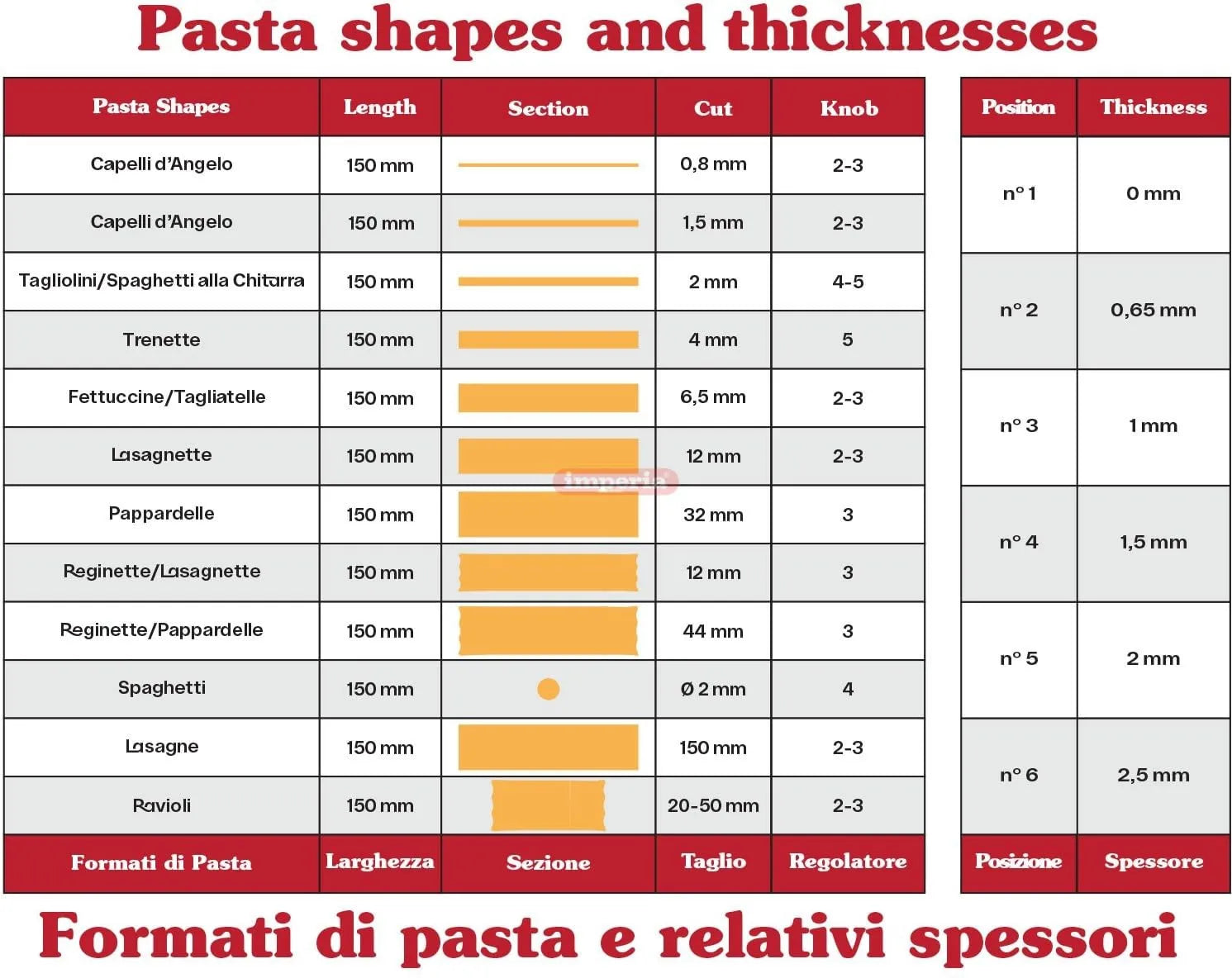 - Applicable accessories (purchased separately): Millegnocchi, Ravioli Maker, Simplex, Duplex