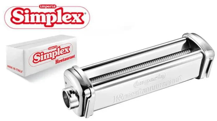 The Simplex Spaghetti attachment for the Imperia Pasta Restaurant machine is an essential tool for creating authentic Italian spaghetti. This stainless steel attachment is not only durable and easy to maintain but also precision-engineered to cut spaghetti to a classic 2 mm width. Ideal for producing traditional spaghetti, this attachment allows for a consistent and uniform shape, perfect for a variety of sauces from light and delicate to rich and creamy.